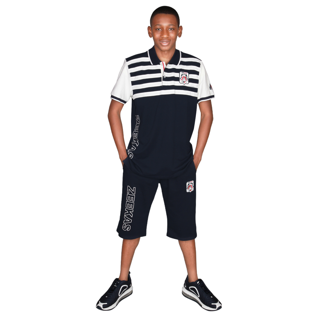 Zeekas Mens Navy Blue And White Striped Polo Shirt Short Sleeve With Bottom
