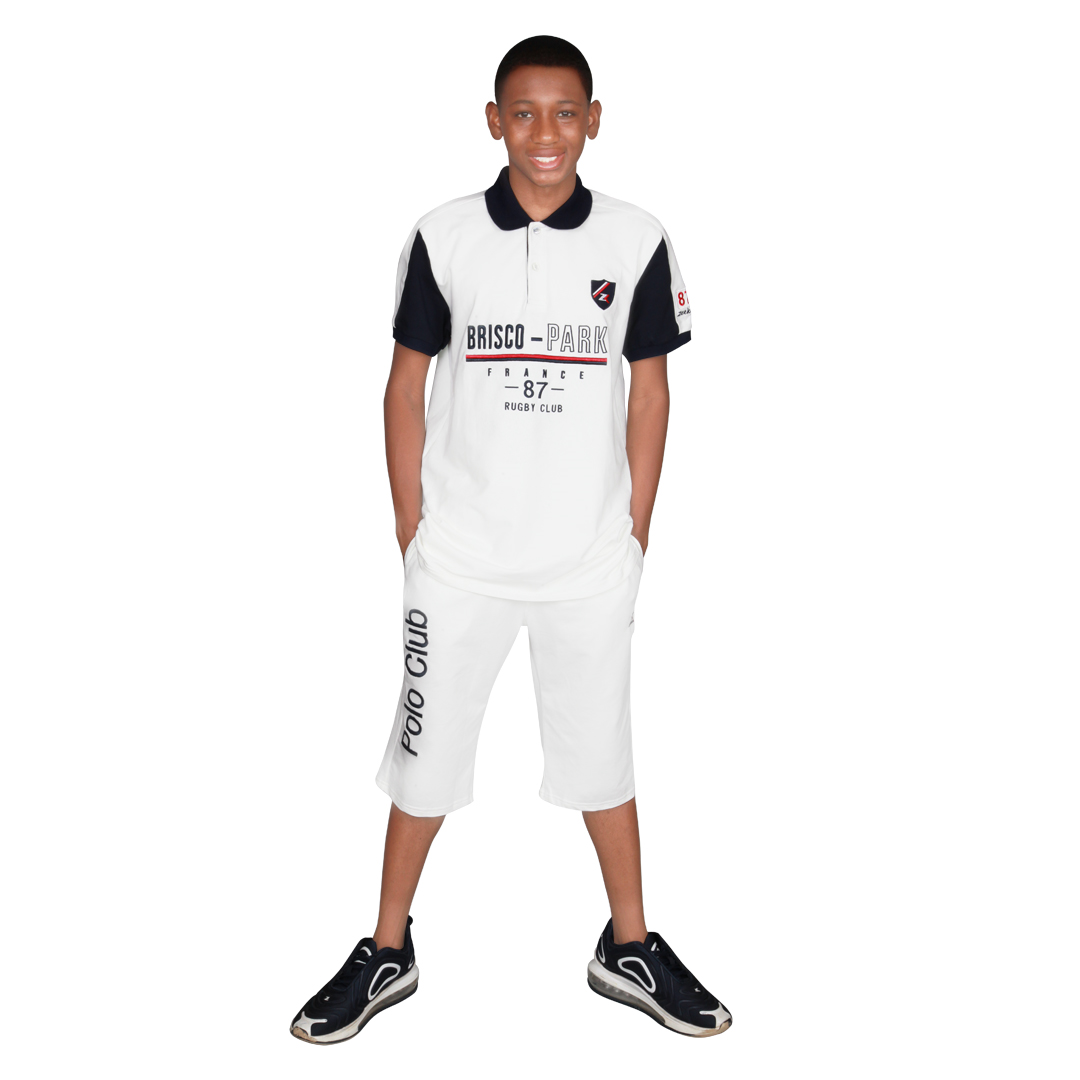 Zeekas White Polo Shirt Mens Short Sleeve With Bottom Set