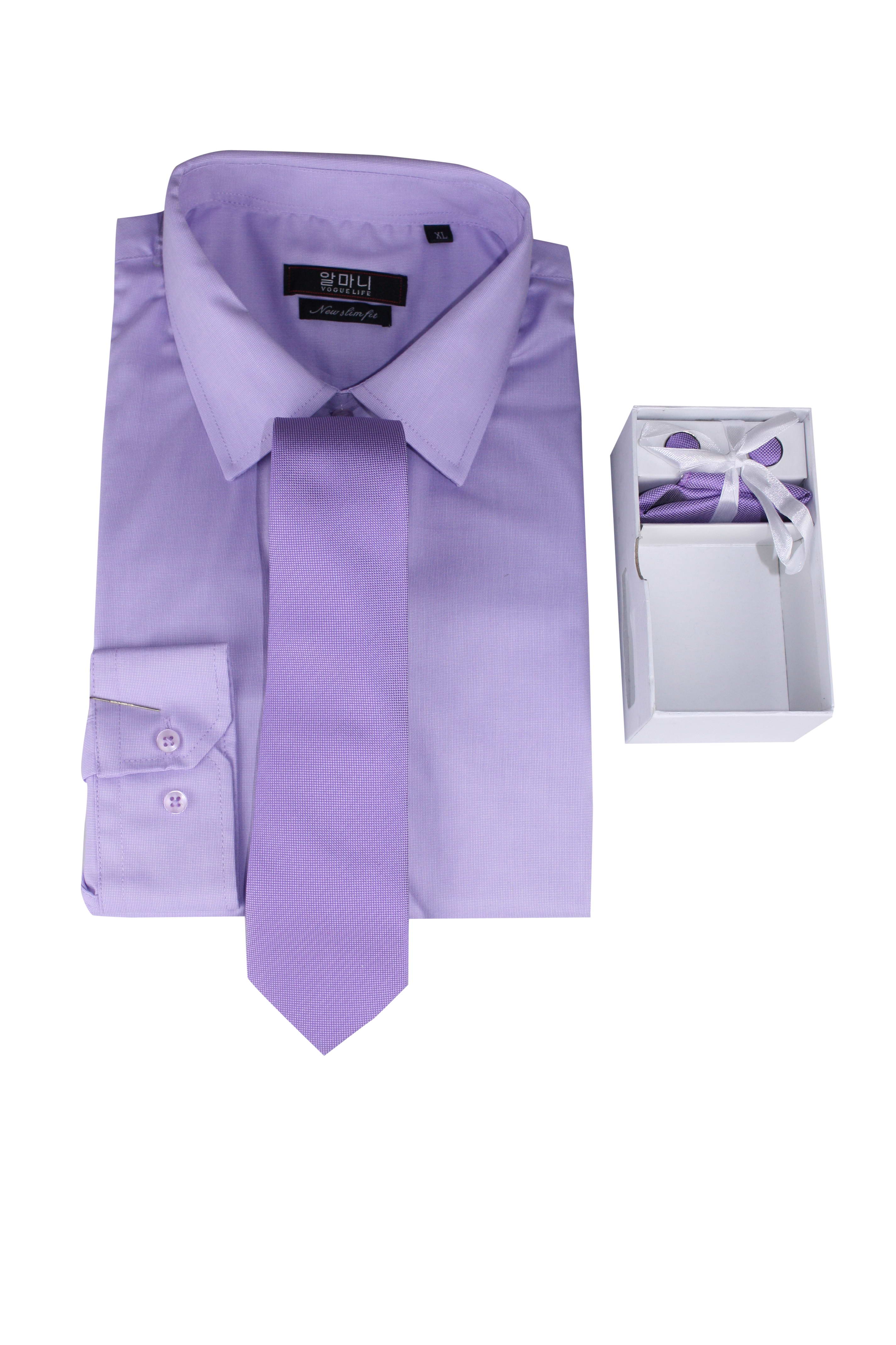 Vogue Life Clothing Formal Cotton Pure Violet Shirt And Tie Set Mens