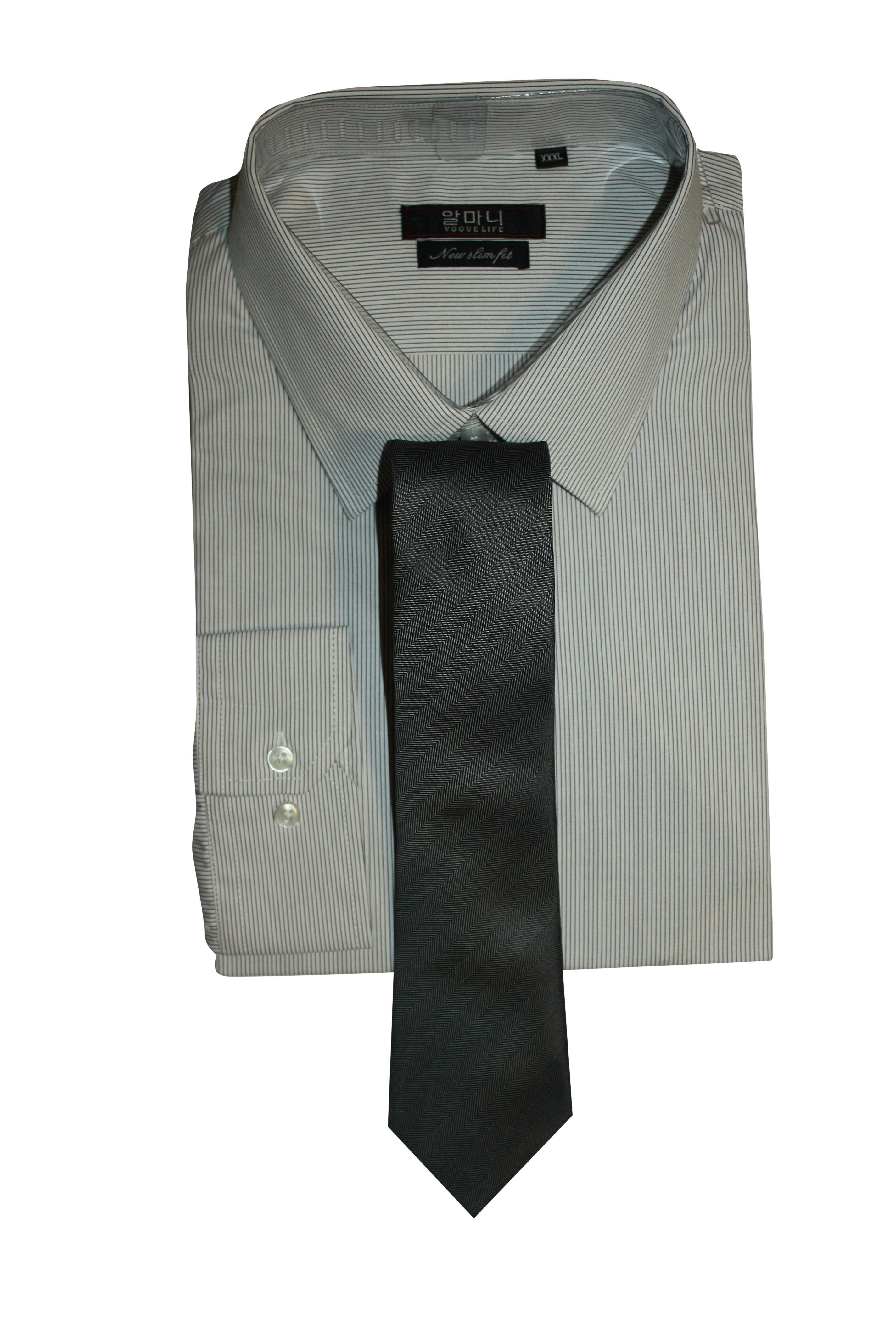Men s Formal Basic VOGUE LIFE Ash Color Striped Shirt With Tie Black Set