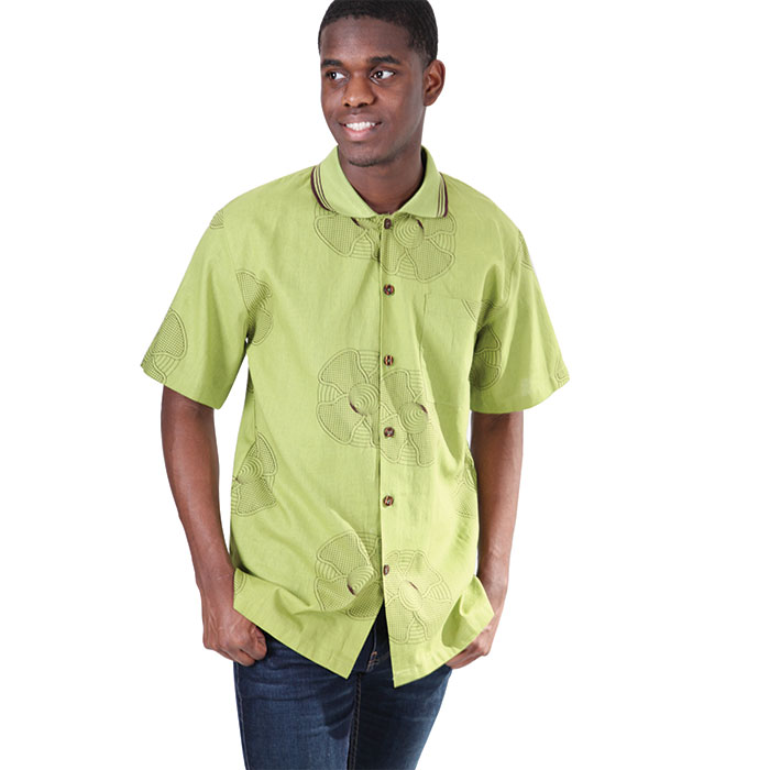 Stylish Short Sleeve Green Shirt With Collar For Men