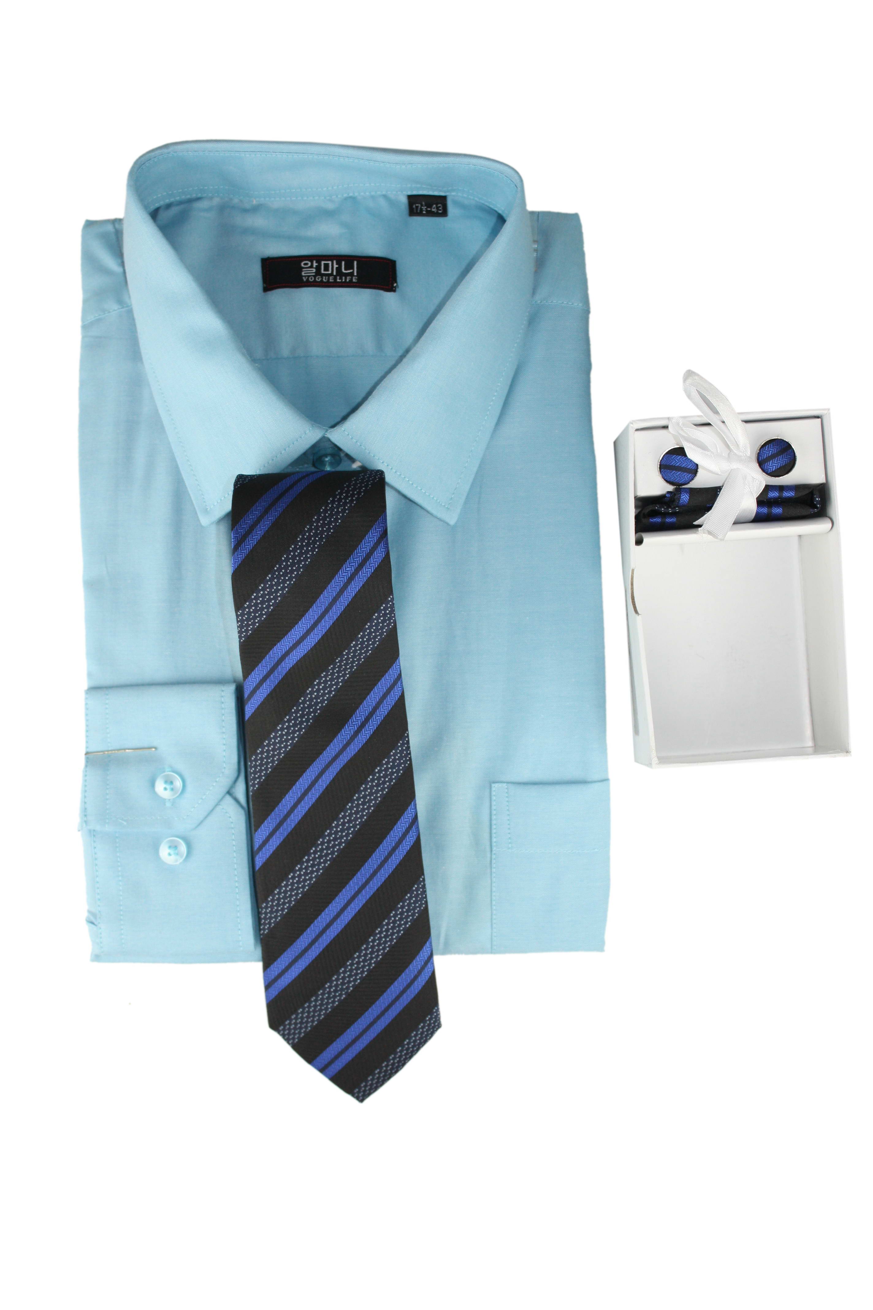 Men s VOGUE LIFE Formal Basic White Stripes Light Blue Shirt Long Sleeve With Tie Set