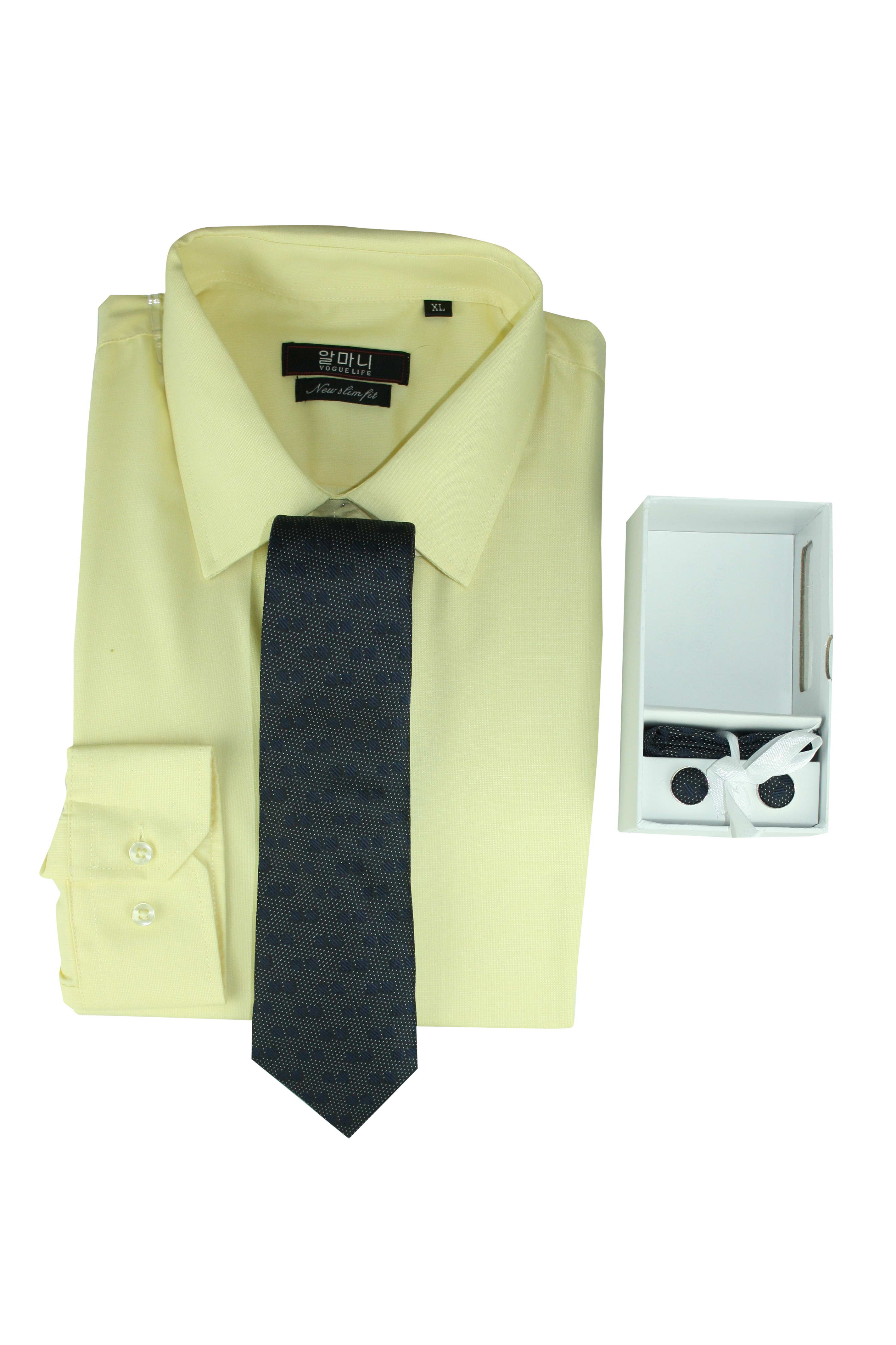 VOGUE LIFE Formal Plain Collar Yellow Shirt Outfit Mens With Tie Set