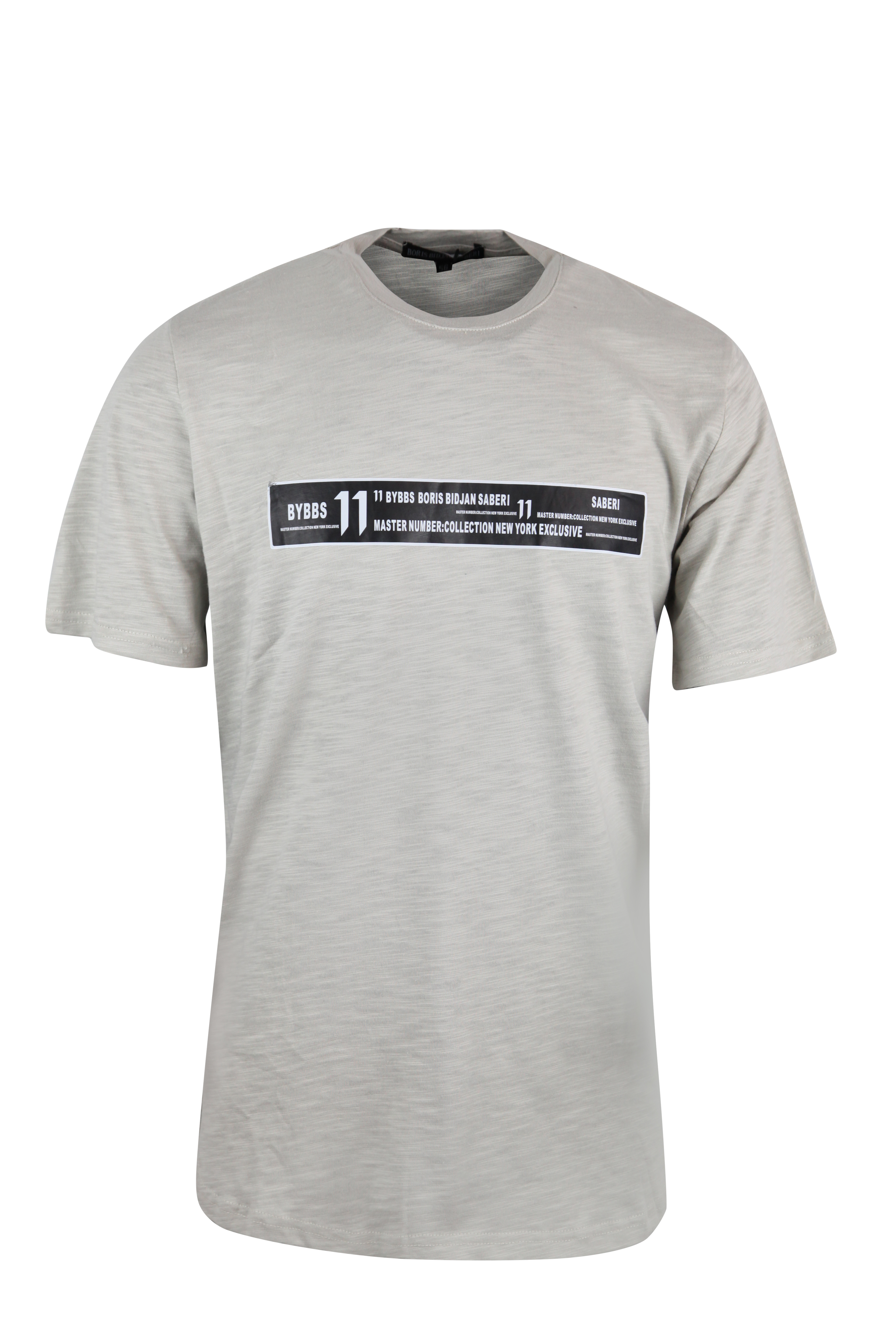 Men s Round Neck Exclamatory Look Print Design Ash Colored T Shirt With Short Sleeves