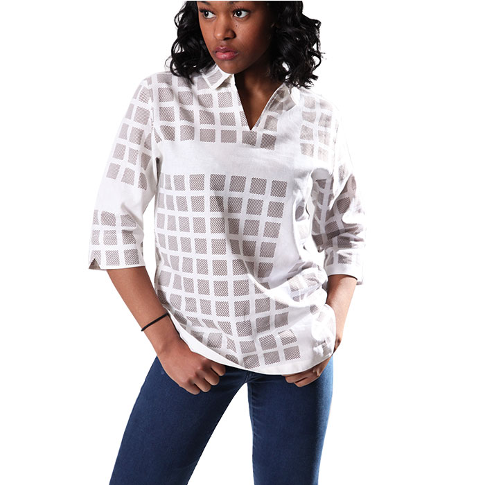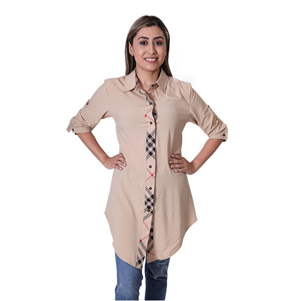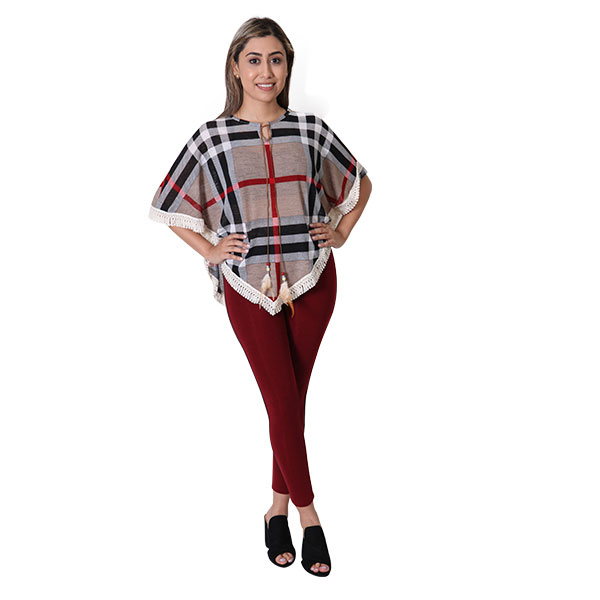 Women Kaftan Sleeve Top Beige With Maroon Black And White Checked Crossfit Dress Pants Set