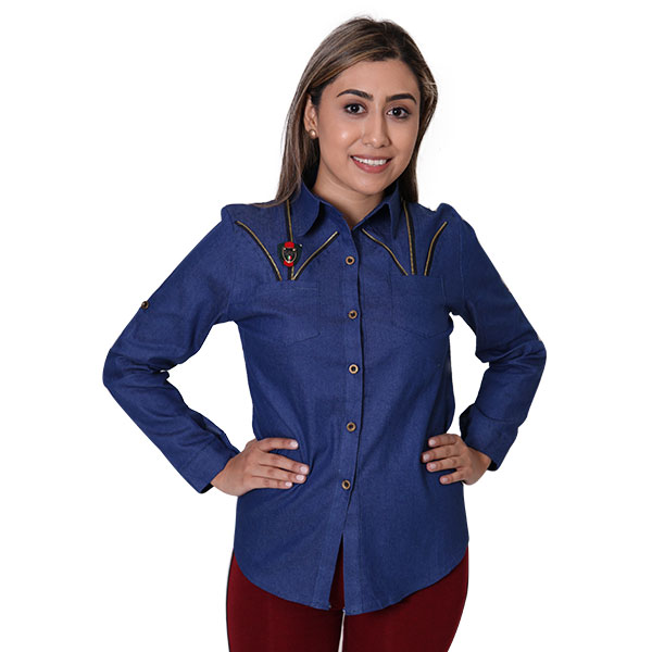 Women Navy Blue Shirt Collared Long Sleeve Button Down Designer Outfit