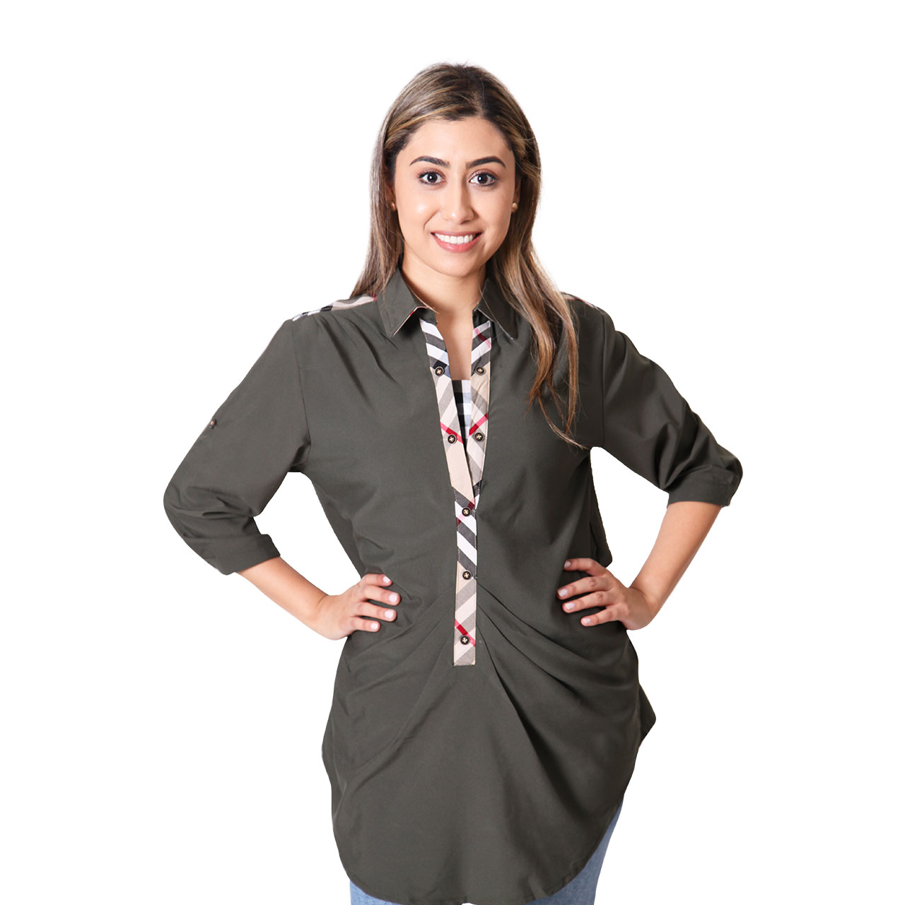 Womens 3 4 Sleeve Polo Shirts Split Neck Top