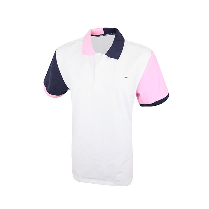 Home > Men s Red And Black Patch Designer Collar T Shirt White